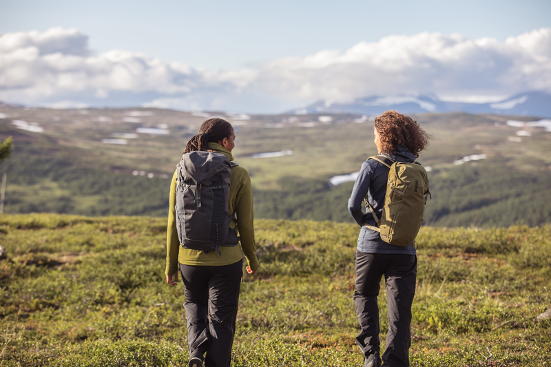 - Bevestig spullen aan de buitenkant van de rugzak met de compressieriemen en lussen aan de zijkanten.
